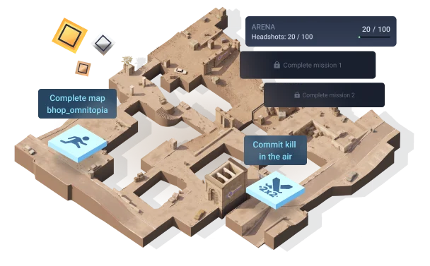 Complete missions, win skins at the end of matches, play with any skins, and much more!